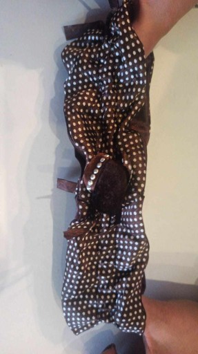 Zdjęcia przedstawiają gumkę od strony wewnętrznej jak i zewnętrznej. Na gumce ze strony zewnętrznej znajdują się trzy welurowe beczułki z kokardką i tak jest na każdej z gumek od spodu natomiast gumka ma kolor jednolity tak jak to widać na zdjęciach