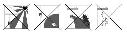 - Unikaj montażu czujnika naprzeciwko przedmiotów odbijających światło np. lustra