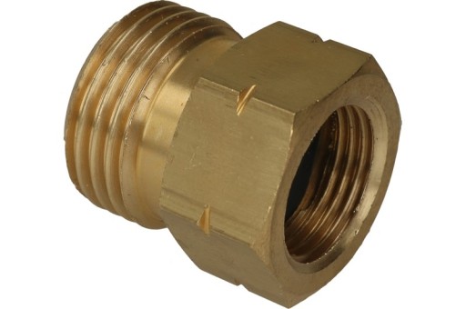 Metalowy adapter z gwintem wewnętrznym calowym lewym G3/8"L (do butli turystycznej) oraz gwintem zewnętrznym calowym lewym W21,8" z uszczelką (do podłączenia przewodu elastycznego.