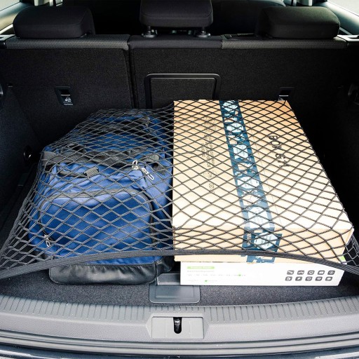Siatka jest wykonana z wytrzymałego, wodoodpornego tworzywa. Pasuje do większości bagażników aut osobowych.