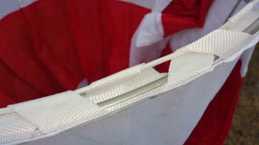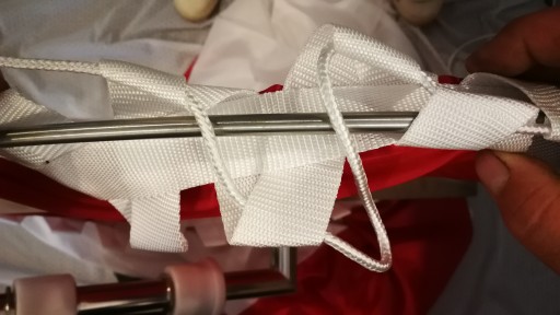 Rękaw posiada taśmy, przez które przeplata się sznurek przyłożony do stelaża, obręczy.