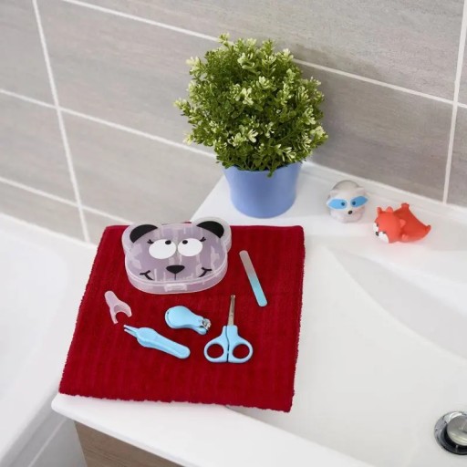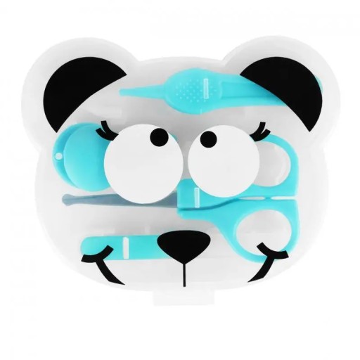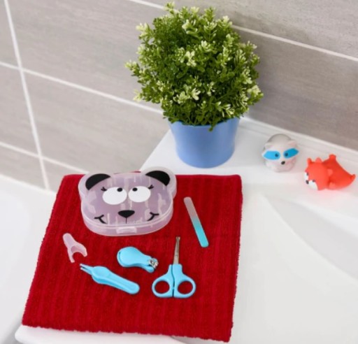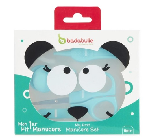 Badabulle Mój 1 zestaw do manicure kosmetyczka do pielęgnacji paznokci dla niemowląt z okrągłymi nożyczkami obcinaczem do paznokci pilnik do paznokci szczypce higieniczne i jego okładką