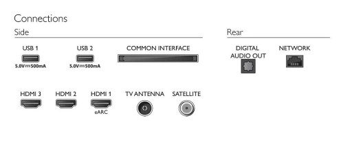 - Gniazda we/wy: 3 x HDMI,2 x USB 2.0,1 x RJ-45 LAN,1 x Audio out,1 x Gniazdo CI/Cl+,1 x Wejście antenowe