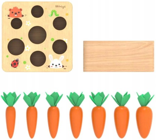- Zabawki do zbioru marchwi to dobre zabawki, które pomagają dzieciom poprawić ich zdolności motoryczne i zdolność myślenia. To dobra zabawka dla dzieci w wieku 1-3 lat, aby zrozumieć kształt i kolor marchewki. Marchewkowe zabawki Montessori Umieść marchewki w różnych otworach w zależności od wielkości marchewki, aby wytrenować dziecko do odkrywania rzeczy i rozpoznawania wielkości pokoju.