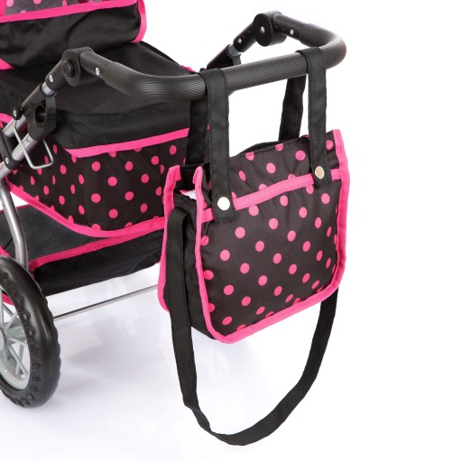 Torbę można umieścić na rączce wózka. Dziewczynka może także zawiesić torbę na ramię lub nieść ją w rękach.