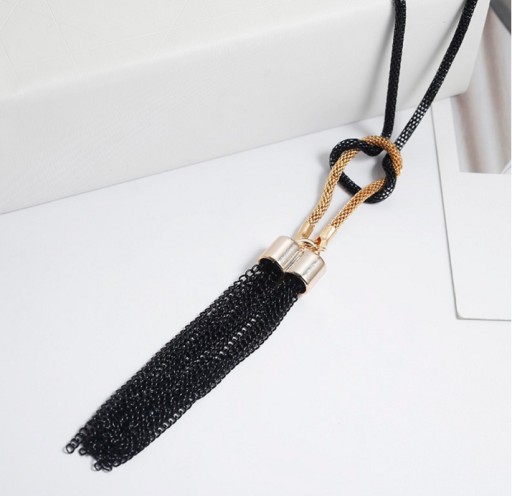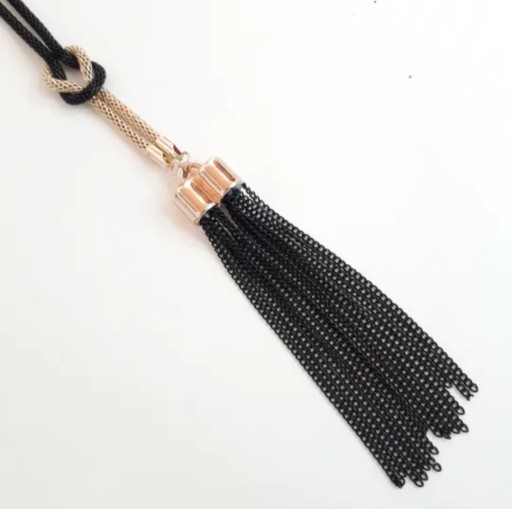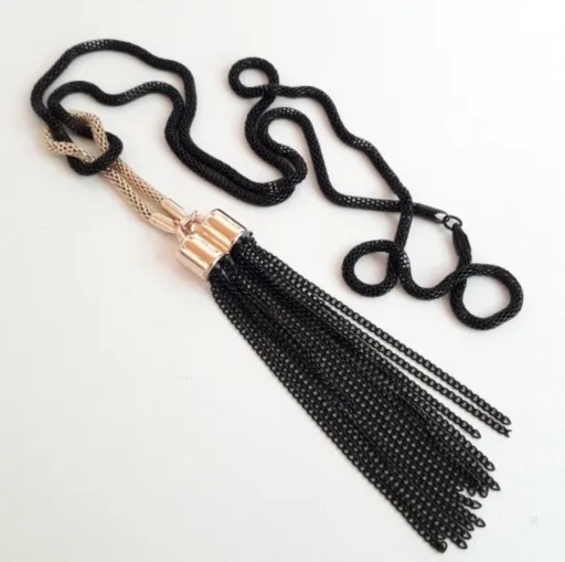 DŁUGI NASZYJNIK ŁAŃCUSZKI CZARNY ZŁOTY 2W1