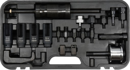 Walizka zawiera 22 elementy służące do demontażu wtryskiwaczy BOSCH, DELPHI, DENSO, SIEMENS.