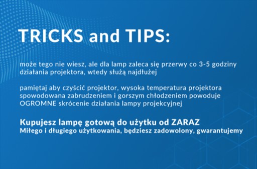 Ps. lampy do projektorów, projektory, sprzęt AV z powodzeniem sprzedajemy od 2008 roku, znamy się na tym, sami używamy projektorów w domach i jesteśmy ich fanami. W dobie dużych telewizorów nadal dla nas to jedyna słuszna opcja „kina w domu” lub poprawnej prezentacji :) możesz nam zaufać, wiemy co robimy, znamy się na tym.