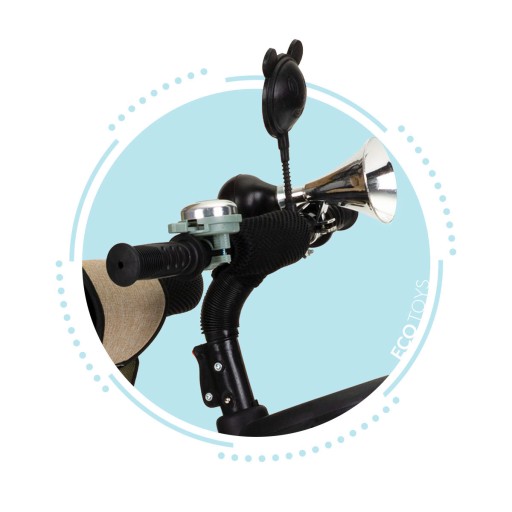 Odpowiednio wyprofilowana kierownica wyposażona jest w gumowe chwyty, które zapobiegają przed ześlizgiwaniem się dłoni oraz chronią je przy upadku. Dodatkowo, na kierownicy umieszczony jest dzwonek oraz trąbka i lusterko.