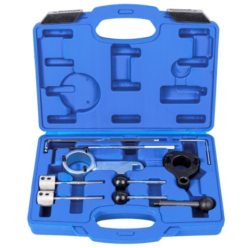 Zestaw przystosowany do blokowania wału korbowego, koła pasowego wałka rozrządu i pompy paliwa w odpowiednim położeniu przystosowanym do demontażu i wymiany paska lub wałka rozrządu.