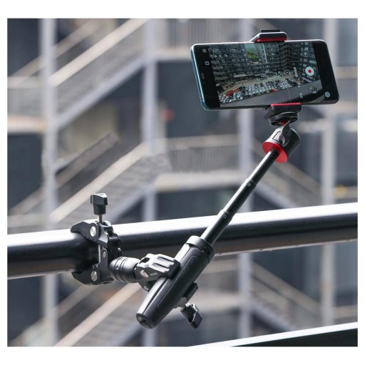 Uchwyt wykonany został z czernionego galwanicznie aluminium i waży 290 g. Znajdujące się po obu stronach zaciski możemy wygodnie obracać o 360°, a także – przy użyciu jednopunktowego zacisku – zablokować je w wybranej pozycji. Uchwyt umożliwia płynną regulację rozwarcia szczęk w zakresie od 12 do 58 mm, a jego maksymalny udźwig wynosi 1,5 kg.