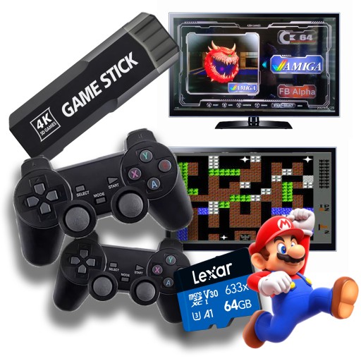 Nasza konsola obsługuje 80 emulatorów systemów 8,16,32 i 64 bitowych! Wszystkie urządzenia od Amstrad CPC po PSP! Karta posiada wgrane ponad 35000 gier takich jak: (Mario, Tanks - Czołgi, Mario 64, Crash Bandicoot, Hity z Automatów, Hity z konsol PSP i PSX i tysiące innych hitów). Dzięki dwóm kontrolerom można grać we 2 osoby!