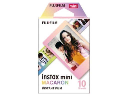 Wkłady Fujifilm Instax Macaron, dziesięć natychmiastowych, kolorowych filmów światłoczułych z kolorowymi ramkami. Zastosowany we wkładach film światłoczuły, charakteryzuje się wysokim kontrastem, żywymi barwami i naturalnym odwzorowaniem skóry. Idealnie sprawdzi się do każdego rodzaju fotografii. Ponadto wkłady cechują się dużą czułością ISO, która wynosi 800. Dzięki temu użytkownik wykona dobre zdjęcia nawet podczas pochmurnej pogody. Aby móc robić natychmiastowe odbitki wystarczy włożyć kasetkę z wkładem do specjalnej komory aparatu, zatrzasnąć klapkę i nacisnąć spust migawki. Wkłady przeznaczone są do aparatów Fujifilm z serii Instax Mini.
