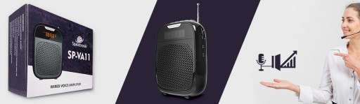 Wzmacniacz głosu to urządzenie składające się z mikrofonu i głośnika. Choć zasada działania jest banalnie prosta to liczba możliwości i udogodnień jest duża. Profesjonalny układ wzmacniający zapewnia czysty i wyraźny głos. Dźwięk o mocy 10W pokrywa około 500 metrów kwadratowych, co jest wystarczające, aby nagłośnić salę i zapewnić słyszalność dla grupy 25-100 osób. Wbudowana bateria pozwala na ciągłą pracę do 38 godzin. Urządzenie to doskonałe rozwiązanie dla nauczycieli, przewodników, konferansjerów itp. Model SP-VA11 posiada wbudowane radio FM.