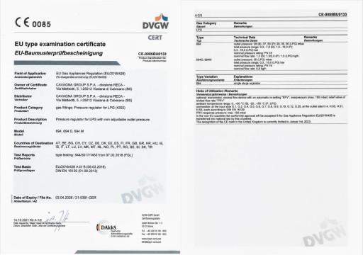 - ciśnienie wyjściowe (za reduktorem) 37 mbar- maksymalny przepływ 1,5kg/h