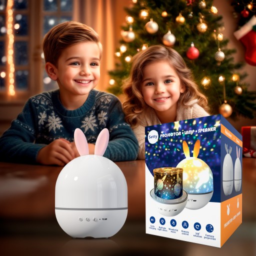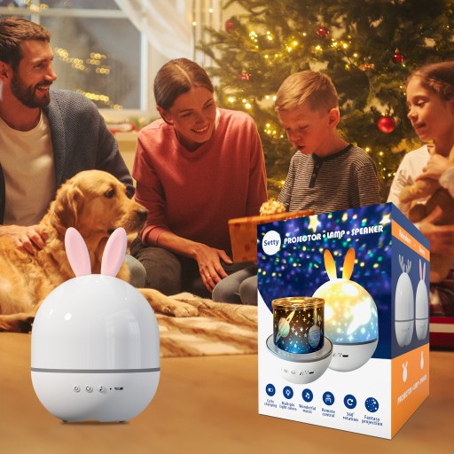 Setty Projektor Gwiazd z pozytywką i głośnikiem Bluetooth biały króliczek