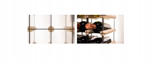 - Minimalizm - niezwykle minimalistyczny i prosty regał. Zbudowany z drewnianych pachnących drążków i czarnej stali. Otwarta konstrukcja znakomicie prezentuje każdą z butelek.