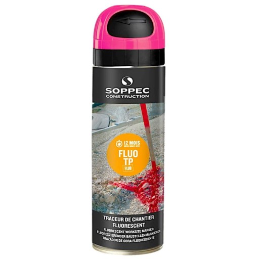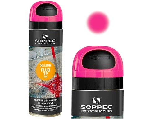 Farba FLUO T.P. SOPPEC to specjalna farba do znakowania wszelkich prac wykonywanych wewnątrz i na zewnątrz. Dzięki doskonałym właściwością farba ta wykazuje bardzo dobrą przyczepność do każdego typu podłoża (asfaltu, skały, gruntu, betonu itp.), nawet w trudnych warunkach atmosferycznych (wilgotność, niskie temperatury itp.).