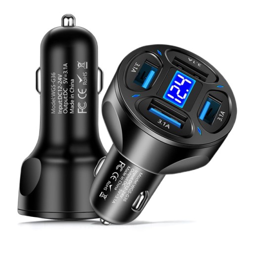 4USB cyfrowy wyświetlacz samochodowy z obsługą 3.1A ładowarki