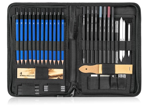 Wysokiej jakości, profesjonalny zestaw do tworzenia rysunków i szkiców, umożliwiający stosowanie różnych technik kreślarskich. Pozwoli rozwinąć umiejętności i urozmaicić spędzony czas.