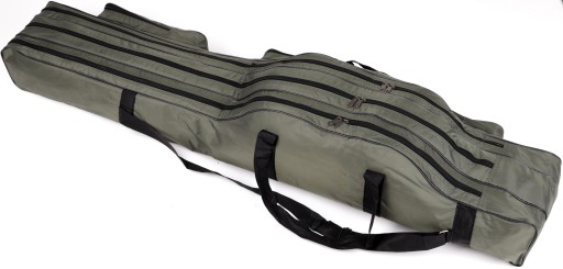 ✅ Pokrowiec posiada trzy komory na wędki oraz kieszonki boczne na dodatkowe akcesoria wędkarskie.