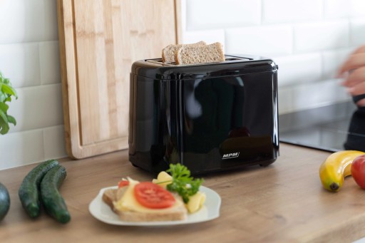 - Funkcje: ● 7-stopniowa regulacja czasu opiekania, ● funkcja przerywania opiekania, ● funkcja podgrzewania, ● funkcja rozmrażania, ● system centrujący pieczywo, ● 2 komory do opiekania pieczywa, ● nóżki antypoślizgowe, ● miejsce na nawinięcie przewodu sieciowego