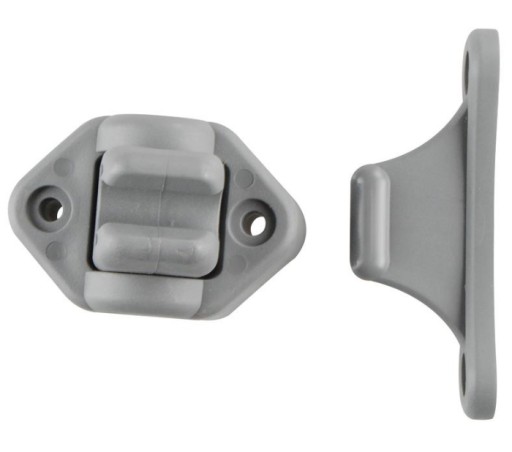 Przesuwny zamek zatrzaskowy dopasowuje się do każdego zawiasu drzwi dzięki ruchomej dolnej części.