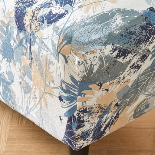 POKROWIEC NA PODNÓŻEK PUF ELASTYCZNY GŁADKI GRAFIKA PRINT W KOLORZE BIAŁYM WZÓR KWIATY JASNE NIEBIESKIE