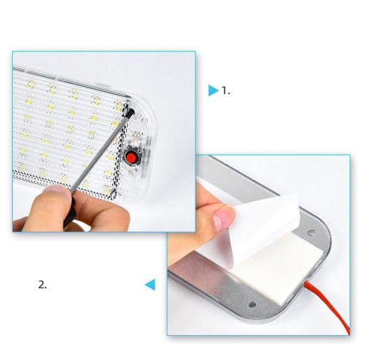 💡💡 Pakiet zawiera: 2x oświetlenie wewnętrzne samochodu, 2x klej, 8x śruby.