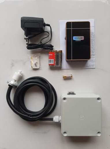 - bezprzewodowy nadajnik odporny na warunki atmosferyczne z przewodem o długości 3 metrów zakończony sondą pływakową, którą należy umieścić w zbiorniku szamba,