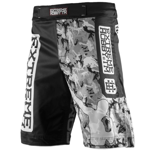 Sportowe spodenki męskie Extreme Hobby Grappling Combat Game to idealny wybór dla miłośników MMA i grapplingu, inspirowane pierwszymi spodenkami tego typu, pozbawione elementów, które mogą narażać zawodników na kontuzje, takich jak napy czy kieszenie.