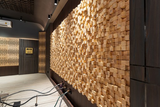 Jednak dyfuzory te nie ograniczają się do tylnej ściany; odgrywają one również istotną rolę w akustycznym wzmocnieniu ścian bocznych, przednich i sufitów, tworząc w ten sposób rozproszony krajobraz dźwiękowy w całym pomieszczeniu.