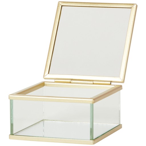 Szkatułka z uwagi na swój transparentny kolor zyskuje optycznej przestrzeni oraz przede wszystkim bardzo wysokiej estetyki. Produkt w całości został wykonany z transparentnego szkła oraz złotych metalowych ramek. Klapka otwiera się przy pomocy drobnych, niemal niewidocznych zawiasów.