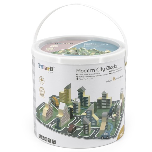 Drewniana Makieta z klockami od renomowanej marki Viga z serii PolarB to idealna zabawka dla przyszłych architektów, którzy chcą stworzyć plan własnego miasta. Rozłóż makietę i za pomocą klocków o różnych kształtach i w pięknych pastelowych kolorach zbuduj miasto! Możliwości tworzenia miasta jest na prawdę wiele, więc zabawy nie będzie końca! Idealnie sprawdzi się na prezent.