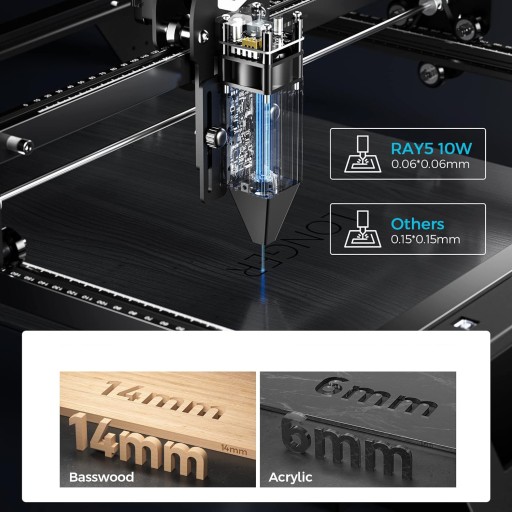 Ray5 10w z 3.5" umożliwia obsługę nowych funkcji, takich jak wiele sposobów przesyłania danych i kontroli wielu maszyn. W innych grawerkach laserowych można grawerować do 1000+ materiałów.