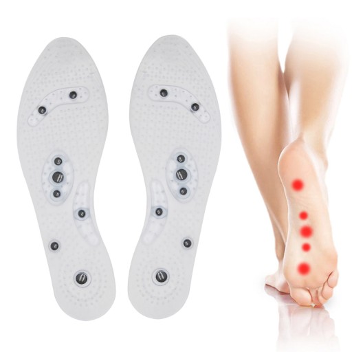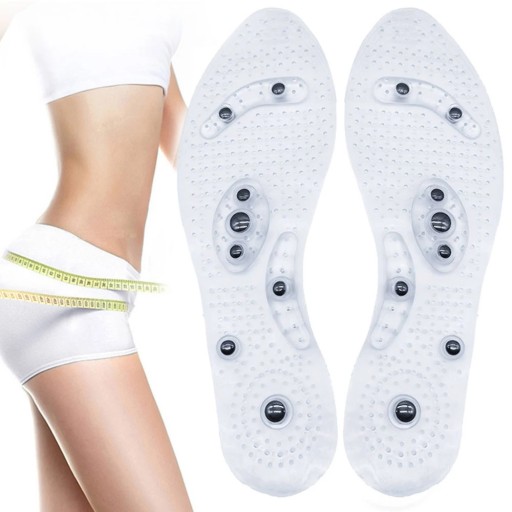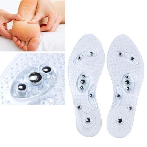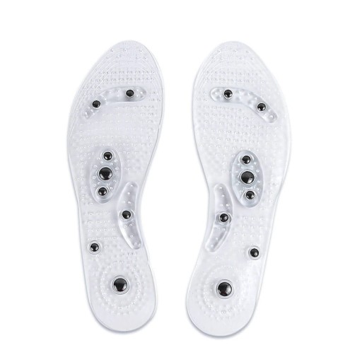 Magnetyczne wkładki do butów zapewniają masaż całej powierzchni stopy. Działają na zasadzie akupresury. Fale magnetyczne docierają do wszystkich punktów stopy, co przynosi ulgę dolegliwościom całego ciała. W stopie znajduje się 7000 zakończeń nerwowych, ich masaż powoduje energetyzowanie całego ciała przy każdym kroku. Masaż akupresury wzmocni Twoje ciało i złagodzi zmęczenie. Codzienne noszenie wkładek zapobiegnie opuchliźnie i zmęczeniu nóg. Wkładki można nosić przez cały dzień w dowolnym czasie, zwłaszcza są dobre podczas uprawiania sportu, w pracy czy wysiłku.