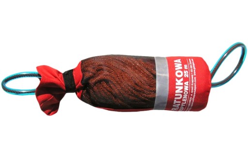 Rzutka ratunkowa o dużej wyporności z liną polipropylenową (pływająca), o długości 25m. Umieszczony w rzutce powleczony pianką obciążnik znacznie wydłuża zasięg rzutu.