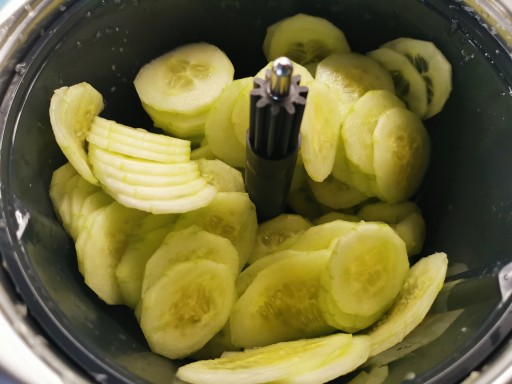 Krajalnica idealnie pasuje do misy urządzenia i sprawia że rozdrabnianie jest łatwe, szybkie i bezpieczne.