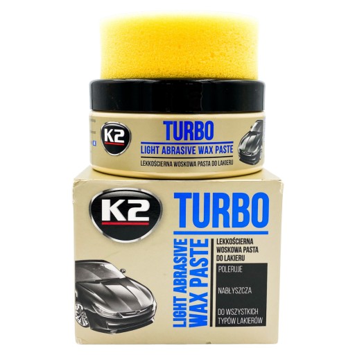 - Wygodna aplikacja pasty polerskiej K2 Turbo jest niezwykle prosta. Dzięki jej lekkościernym właściwościom, nie wymaga dużego wysiłku przy polerowaniu. Po umyciu i osuszeniu karoserii, wystarczy nanieść cienką warstwę pasty za pomocą miękkiej szmatki, a po zaledwie 30 sekundach możesz cieszyć się imponującym połyskiem na lakierze.