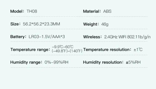 • Łączność Wi-Fi: Łączy się z domową siecią Wi-Fi, umożliwiając monitorowanie temperatury i wilgotności z dowolnego miejsca za pomocą smartfona.