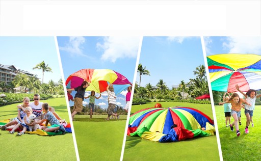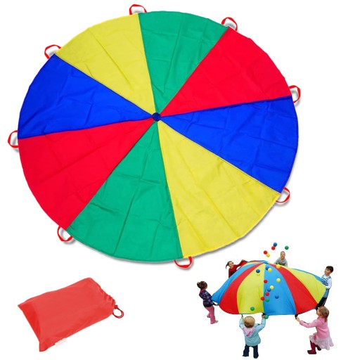 - Spadochron ten może poprawić umiejętność współpracy dzieci z rodzicami podczas zabaw grupowych, ćwiczyć zmysł rytmu oraz koordynację rąk, nóg, talii i mięśni ramion.