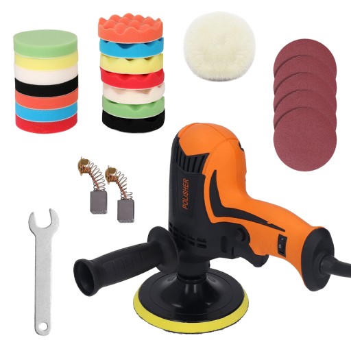 💫Szlifierka do podłóg 980W50hz Polerka samochodowa (papier ścierny*5 szczotka węglowa*2 płaska gąbka*7 krążek samoprzylepny*1 falista gąbka*7 krążek wełniany*1 uchwyt*1 klucz*1)💫