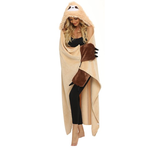 jeśli znajdziesz lenistwo w swoich leniwych dniach, ten koc lenistwa będzie najlepszym wyborem. Kocyk z kapturem ma duży kaptur, twarz leniwca i ciepłe rękawiczki z pazurami, które sprawią, że będziesz wyglądać jak prawdziwy leniwiec.