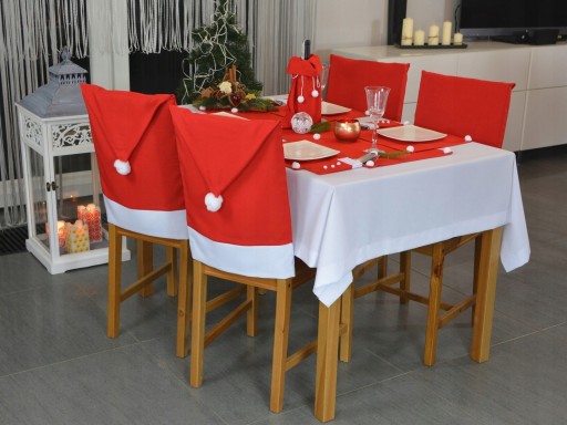 POKROWCE NA KRZESŁA CZAPKA ŚWIĘTEGO MIKOŁAJA + OBRUS