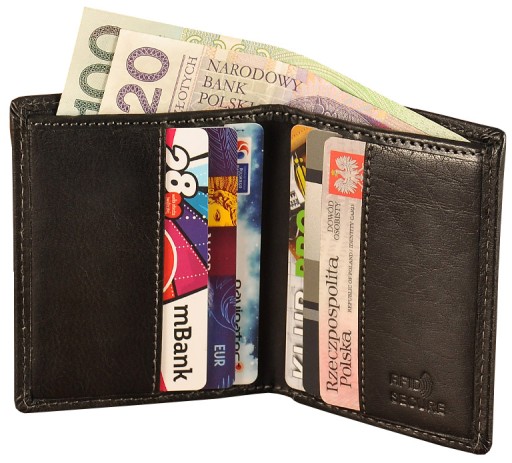 Portfel blokuje sygnały RFID wykorzystywane w kartach zbliżeniowych. W chwili obecnej większość kart jakie wydają banki są to karty z technologią zbliżeniową. Dzięki blokadzie nie zdarzy się, że ktoś przyłoży nam skaner do kieszeni lub torby i przeleje na swoje konto drobną kwotę której nawet nie zauważymy.