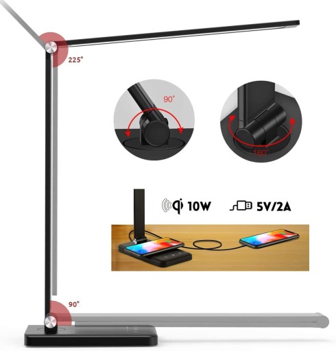 💡Ta lampa biurkowa ma szybkie bezprzewodowe ładowanie 10 W i funkcję ładowania USB 5 V/2 A. Możesz ładować swój smartfon podczas pracy, nauki i relaksu, co jest bardzo wygodne.