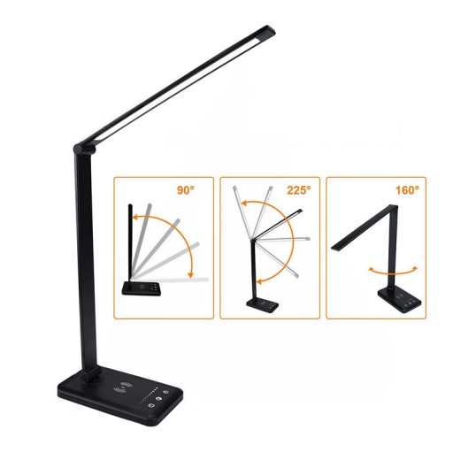 НАСТОЛЬНАЯ СВЕТОДИОДНАЯ СЕНСОРНАЯ ЛАМПА, 5 ЦВЕТОВ, РЕГУЛИРУЕМАЯ С БЕСПРОВОДНОЙ ЗАРЯДКОЙ