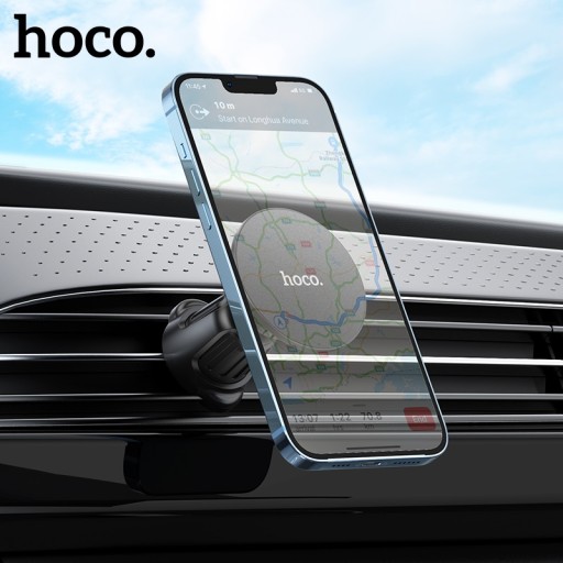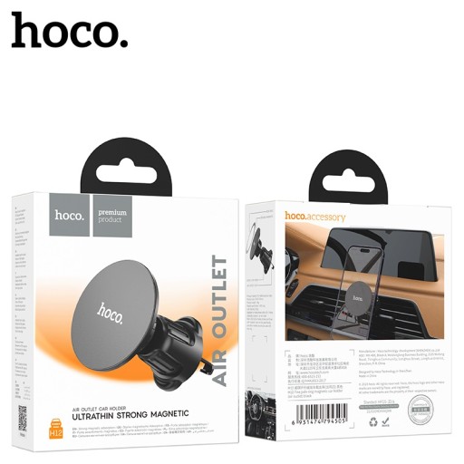 hoco. H12 Fine jade to samochodowy uchwyt magnetyczny do telefonu / na telefon, z przeznaczeniem do montażu na kratce nawiewu / wentylacyjnej / do kratki auta / pojazdu / samochodu, wyposażony w ramię montażowe z dociskiem trzymania oraz regulowaną głowicę, dające nieograniczone możliwości regulacji i dostosowania do własnych potrzeb kierowcy oraz przegub kulowy, przeznaczony do telefonów komórkowych / smartfonów lub tabletów o wadze nie większej niż 0,5 kg i wielkości wyświetlacza od 4.7 do 7 cali.