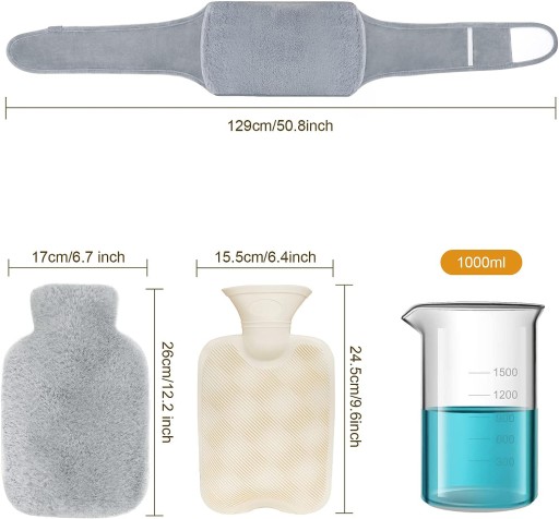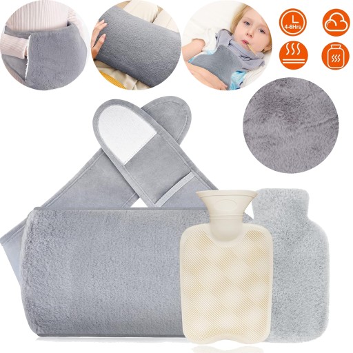 Butelka na gorącą wodę z PVC o dużej pojemności (1000 ml), super wygodny pluszowy pokrowiec i pluszowy pas. Butelkę z gorącą wodą można umieścić w rękawie i pasie biodrowym, rozmiar pasa biodrowego jest wydłużony, aby pasował do wszystkich sylwetek ciała, co nie tylko uwalnia ręce, ale także zapobiega bezpośredniemu dotknięciu skóry przez butelkę z gorącą wodą i spowodowaniu oparzeń.