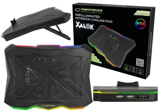 Podkładka posiada podświetlenie LEDRGB. Wudowany niezwykle cichy wentylator.